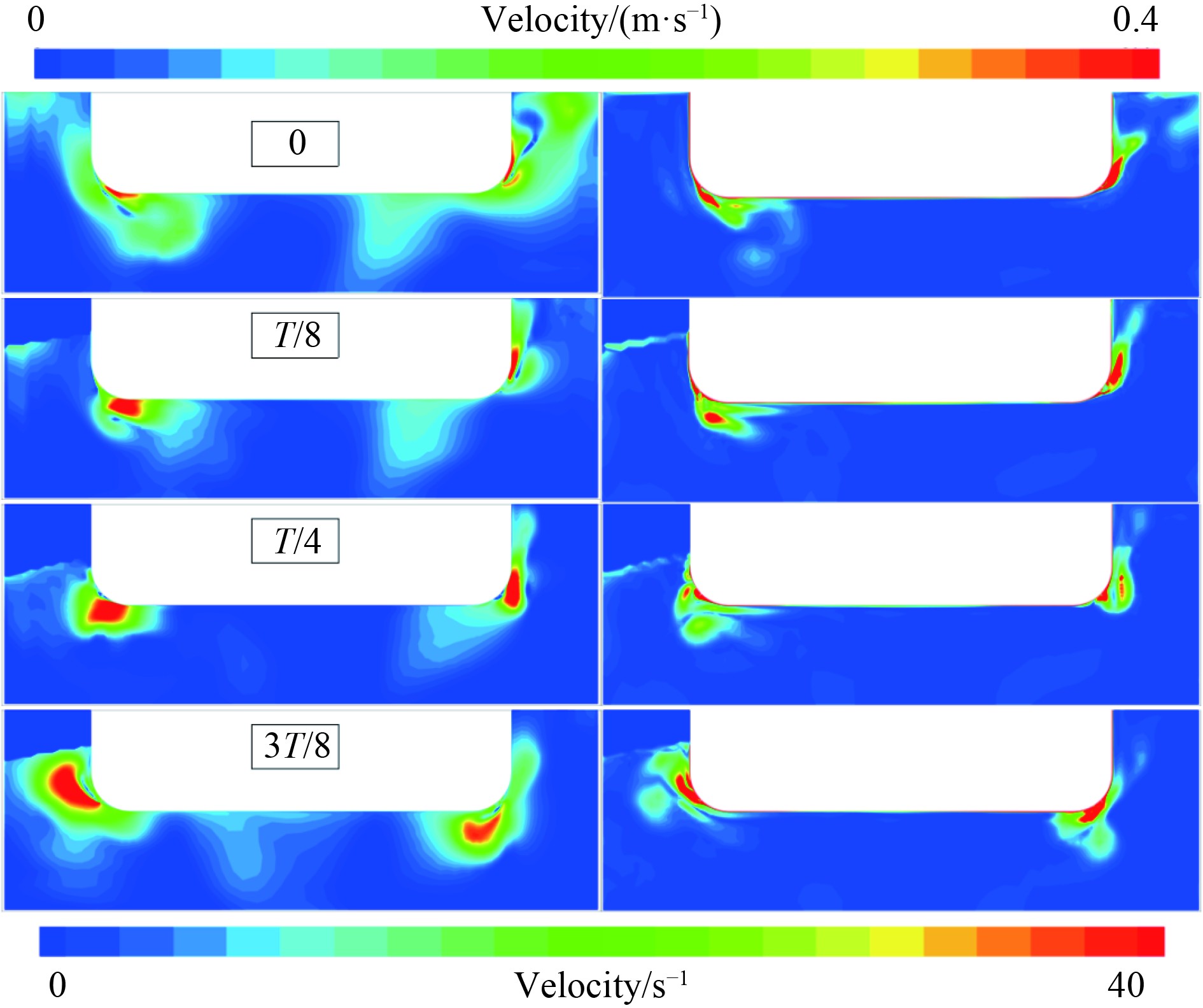 值得注意的是,在横摇运动方向改变后的一段时间内,旧涡仍然存在于船体附近。旧涡的存在旧涡诱导的流场会改变新涡的生成环境和演化过程,这意味着当前周期的横摇阻尼不仅取决于当前的运动状态,也受到上一周期横摇运动的影响。