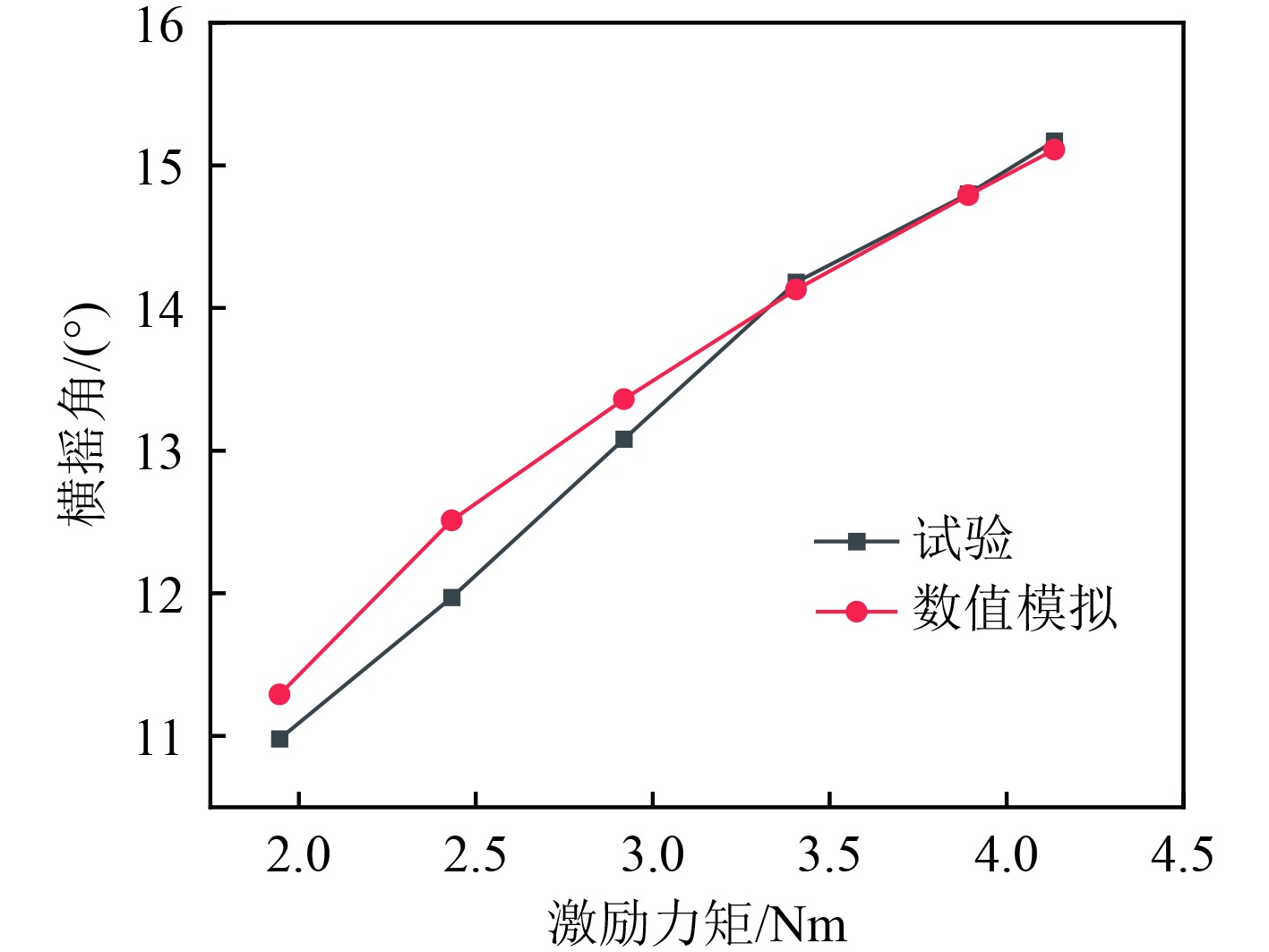 图 3 数值模拟与试验对比 Fig. 3 Comparison of steady roll amplitudes between numerical simulations and experimental results |