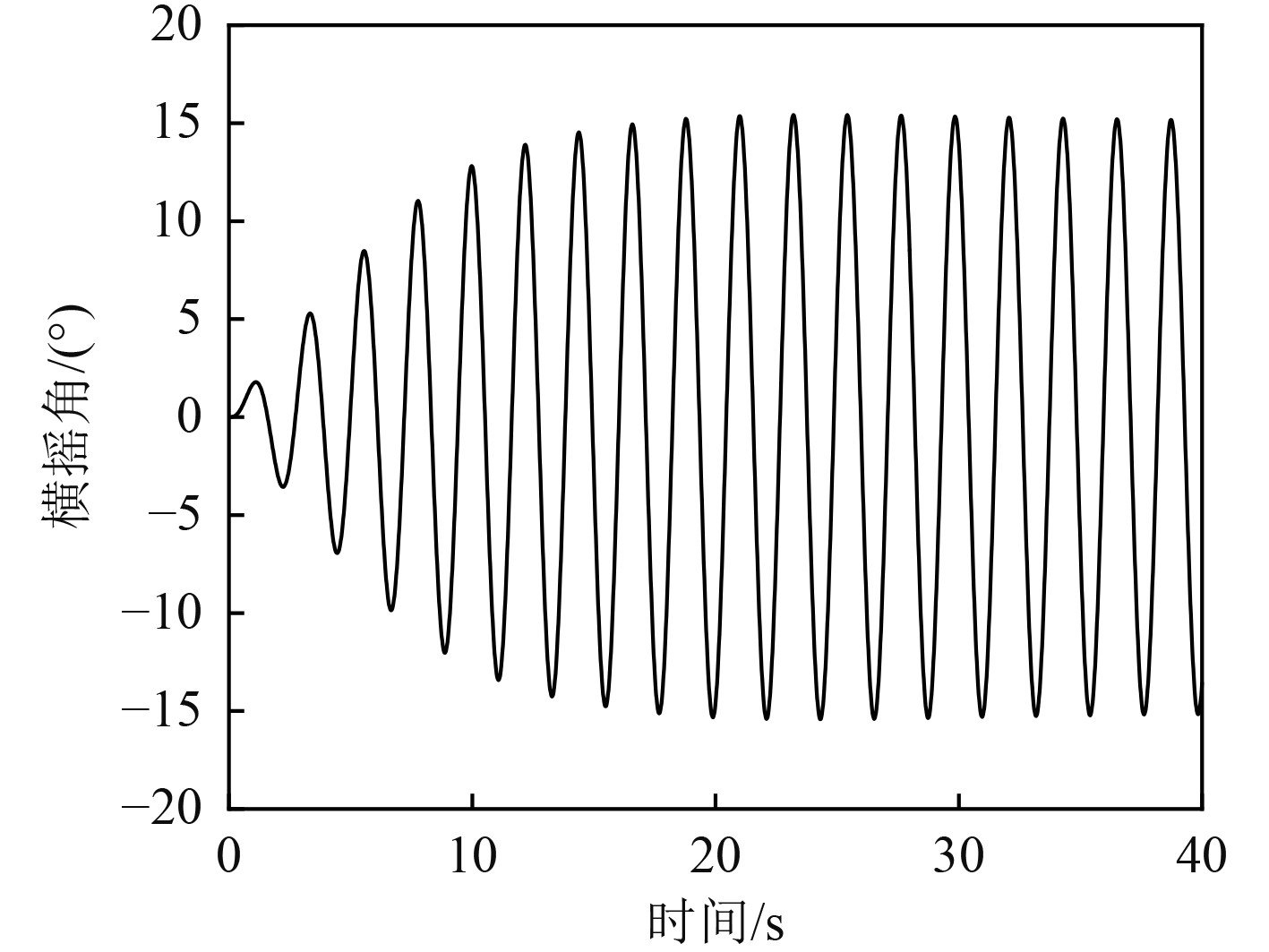 图 4 R6工况横摇角 Fig. 4 Time history of the roll motion for case R6 |