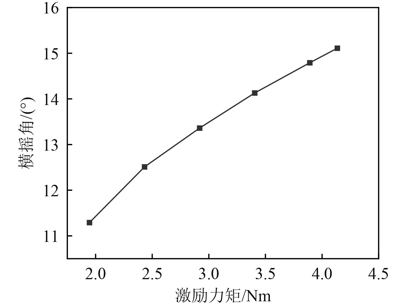 图 5 稳态横摇角随激励力矩变化 Fig. 5 Variation of steady roll amplitude with the amplitude of excitation torque |