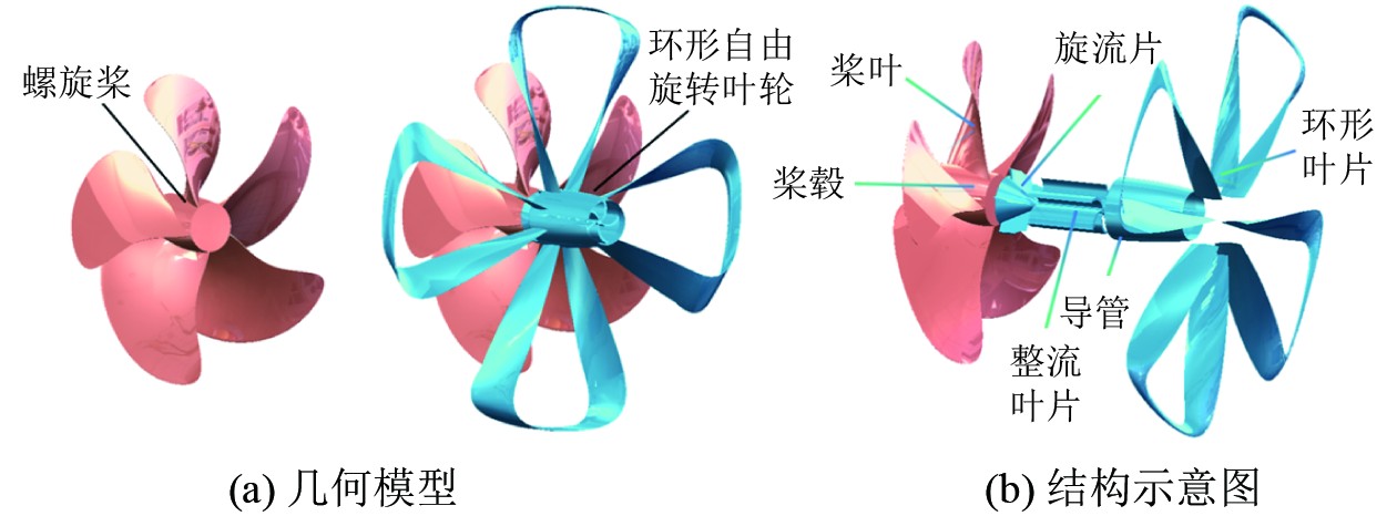 图 1 螺旋桨与新型附体模型 Fig. 1 Propeller and new appendage model |