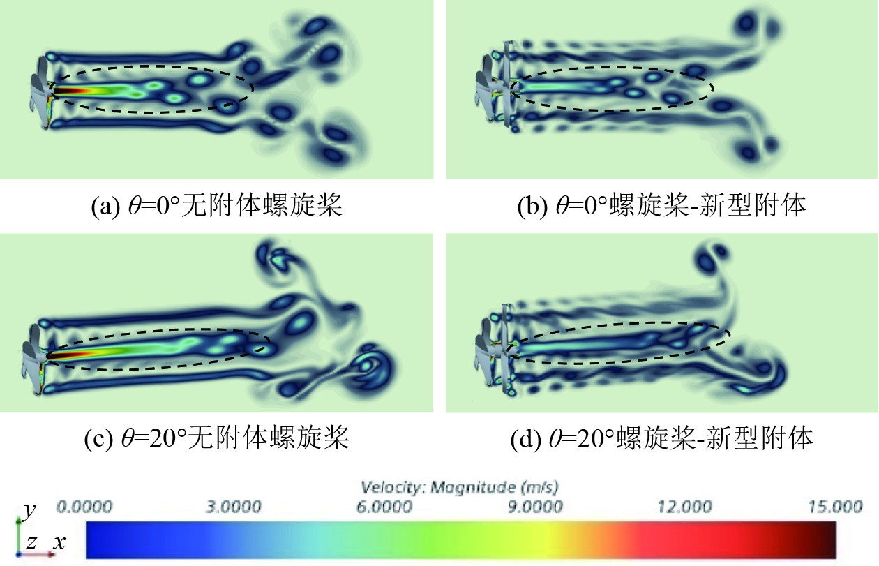 新型附体的存在能够显著提高螺旋桨的整体推进效率,本部分将深入剖析新型附体对螺旋桨尾部流场的改善效果。