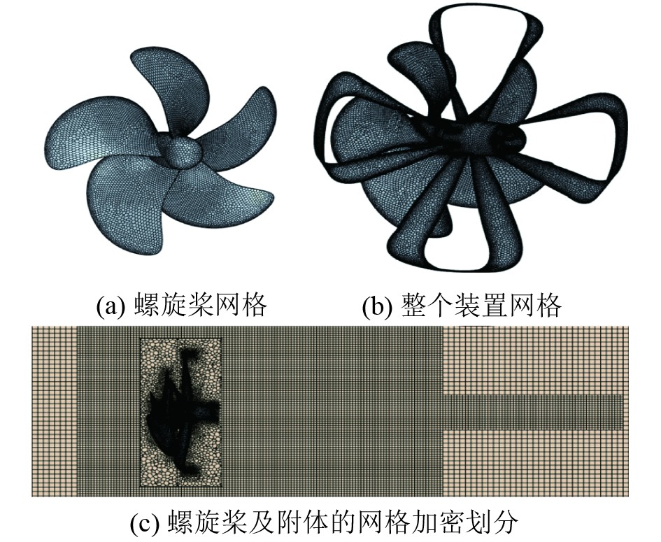 图 4 螺旋桨与新型附体网格划分 Fig. 4 Meshing of propeller with new appendage |