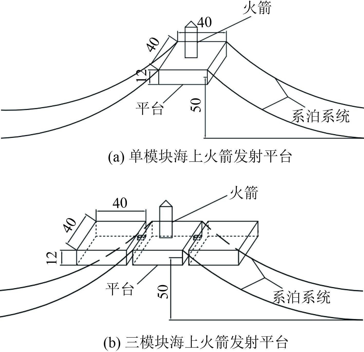 图 1 海上火箭发射平台示意图 Fig. 1 Schematic diagram of the offshore rocket launch platform |