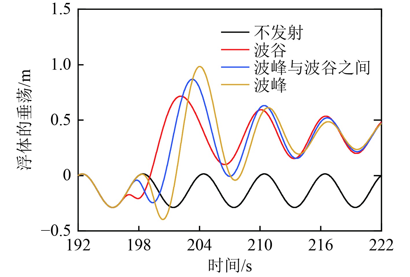 图 3 不同发射时间下平台垂荡响应 Fig. 3 Platform heave response under different launch times |