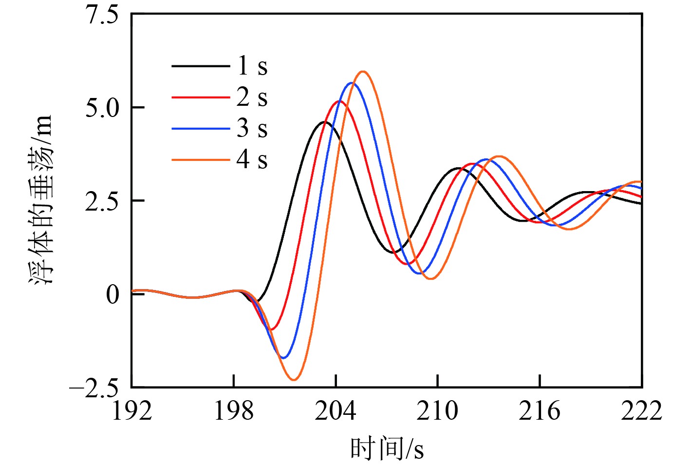 图 4 不同推力响应时间下平台垂荡响应 Fig. 4 Platform heave response under different thrust response time interval |