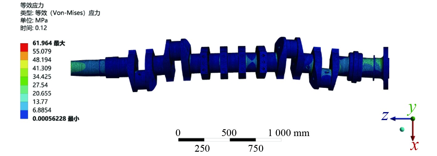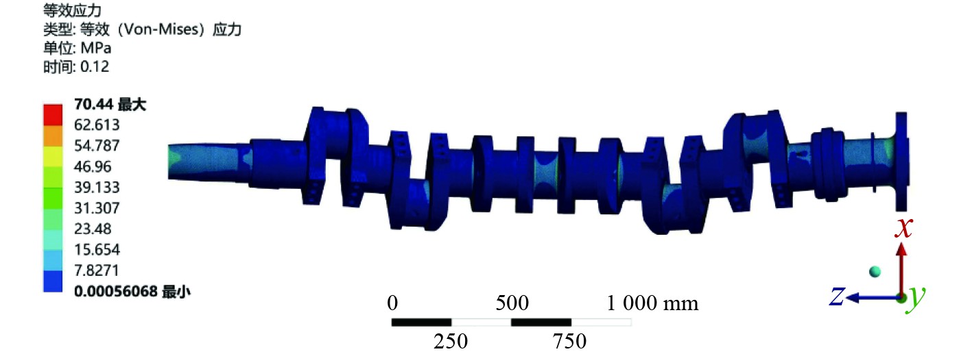 图 3 曲轴等效应力图 Fig. 3 Crankshaft equivalent stress cloud map |