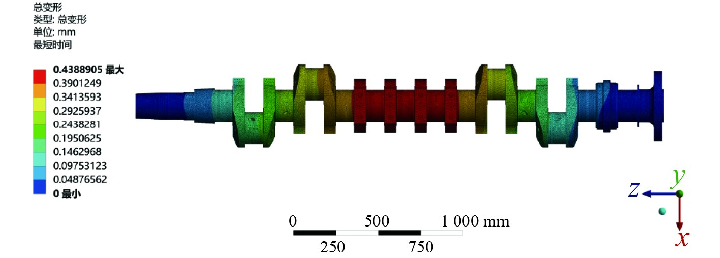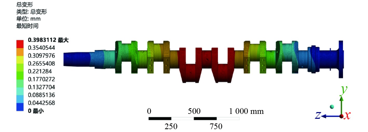 图 4 曲轴变形云图 Fig. 4 Crankshaft deformation cloud map |