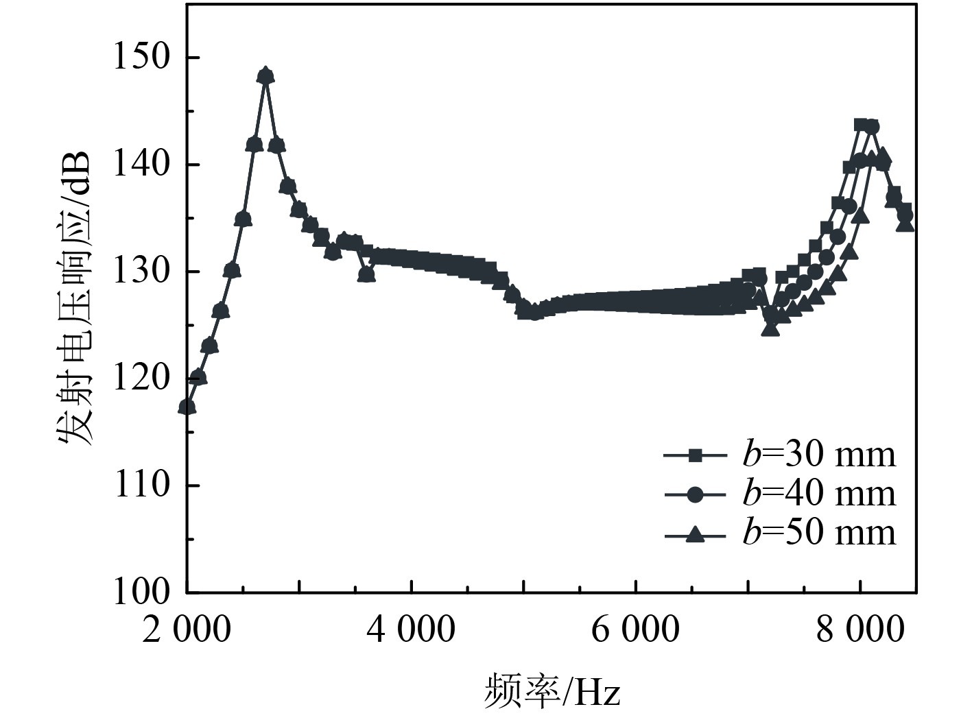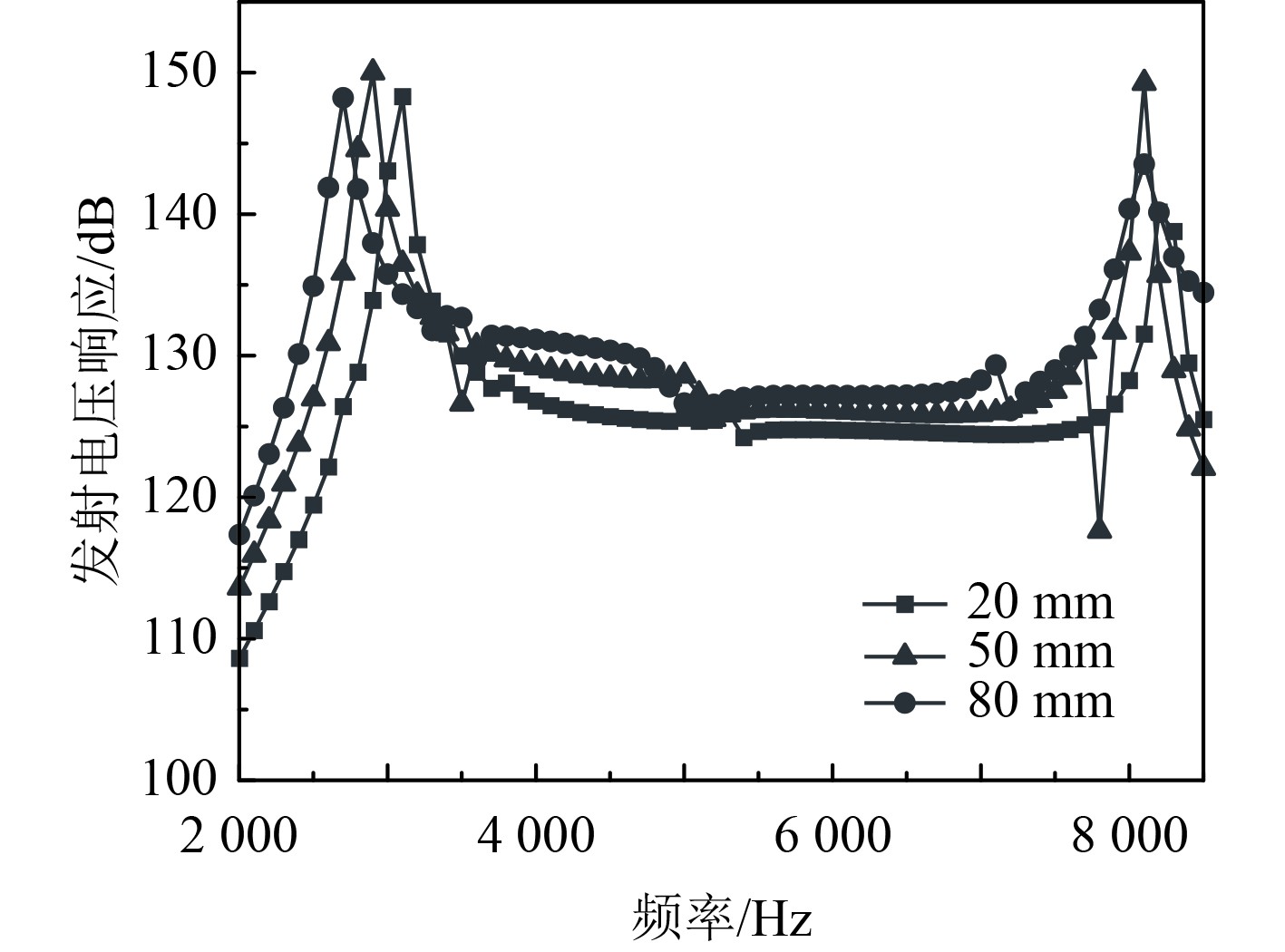 图 11 换能器高度对发射电压响应的影响 Fig. 11 Effect of transducer height on transmitting voltage response |