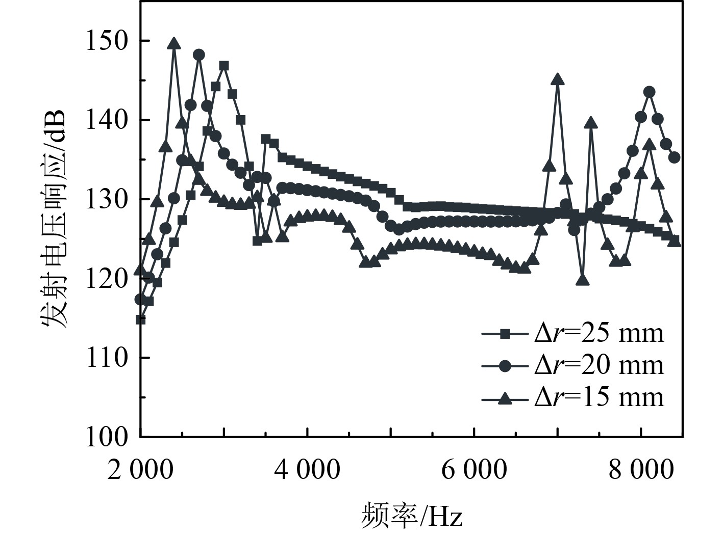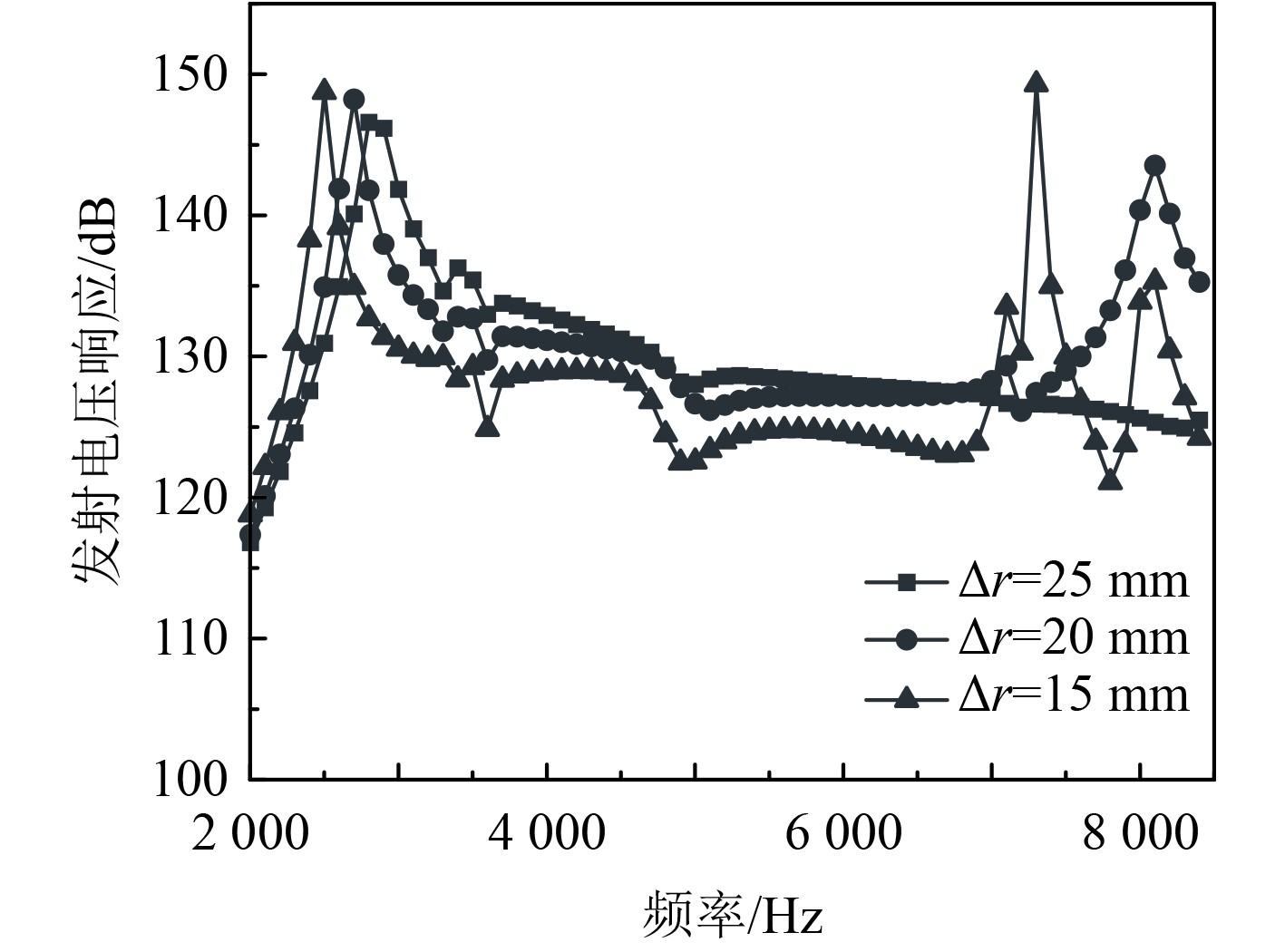 图 7 外径不变的圆环厚度变化对发射电压响应的影响 Fig. 7 Effect of radial thickness variation at fixed outer diameter on transmission voltage response |