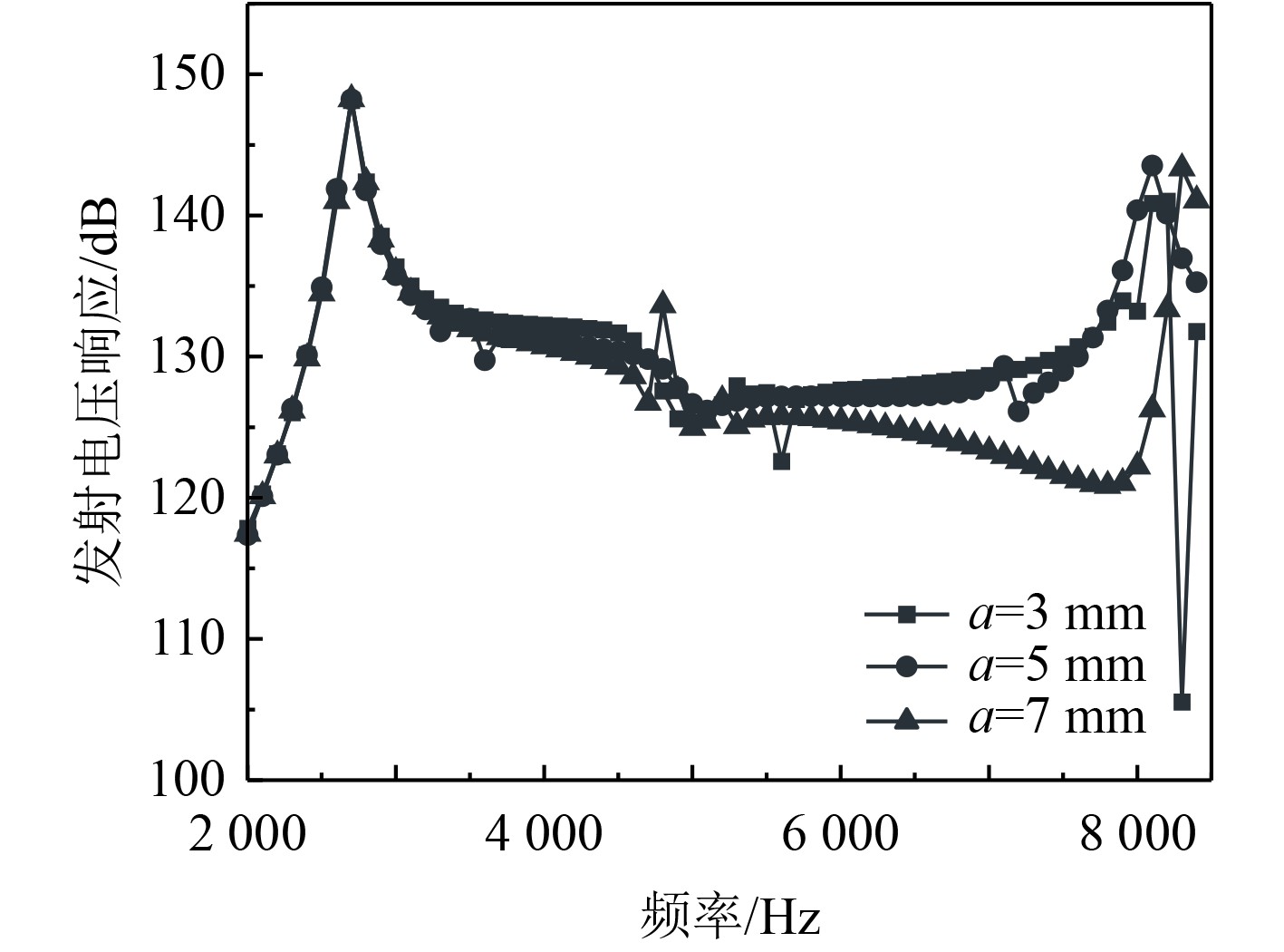 图 8 翼板厚度a对发射电压响应的影响 Fig. 8 Effect of radiating plate thickness a on transmission voltage response |