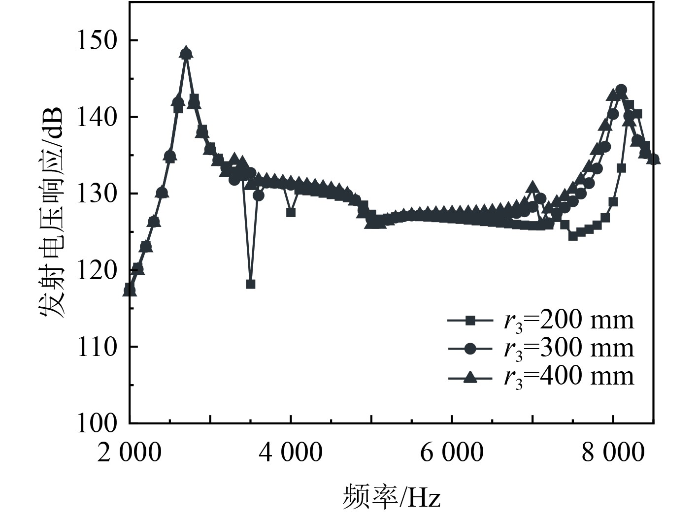 图 9 翼板曲率半径变化对发射电压响应的影响 Fig. 9 Effect of radiating plate curvature radius variation on transmission voltage response |