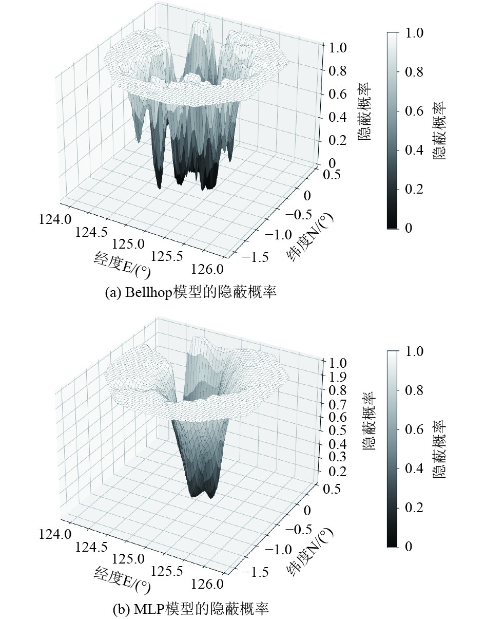 基于此,本文首先利用传统方法对主动声呐信号余量进行计算:将海洋环境参数(如温度、盐度、深度等)输入Bellhop声传播模型,获取传播损失,再结合主动声呐方程推导出对应的信号余量值。随后,以海洋环境数据作为输入特征集,信号余量作为预测目标,构建并训练多层感知器神经网络模型,实现对信号余量的快速预测。进一步地,本文将预测得到的信号余量代入概率探测模型,推算潜艇在不同环境条件下的被探测概率,形成对其隐蔽性水平的评估。通过与基于Bellhop模型的传统方法计算结果进行对比,验证所提出方法在精度、效率和泛化能力方面的表现,显示出一定的可行性与应用价值。