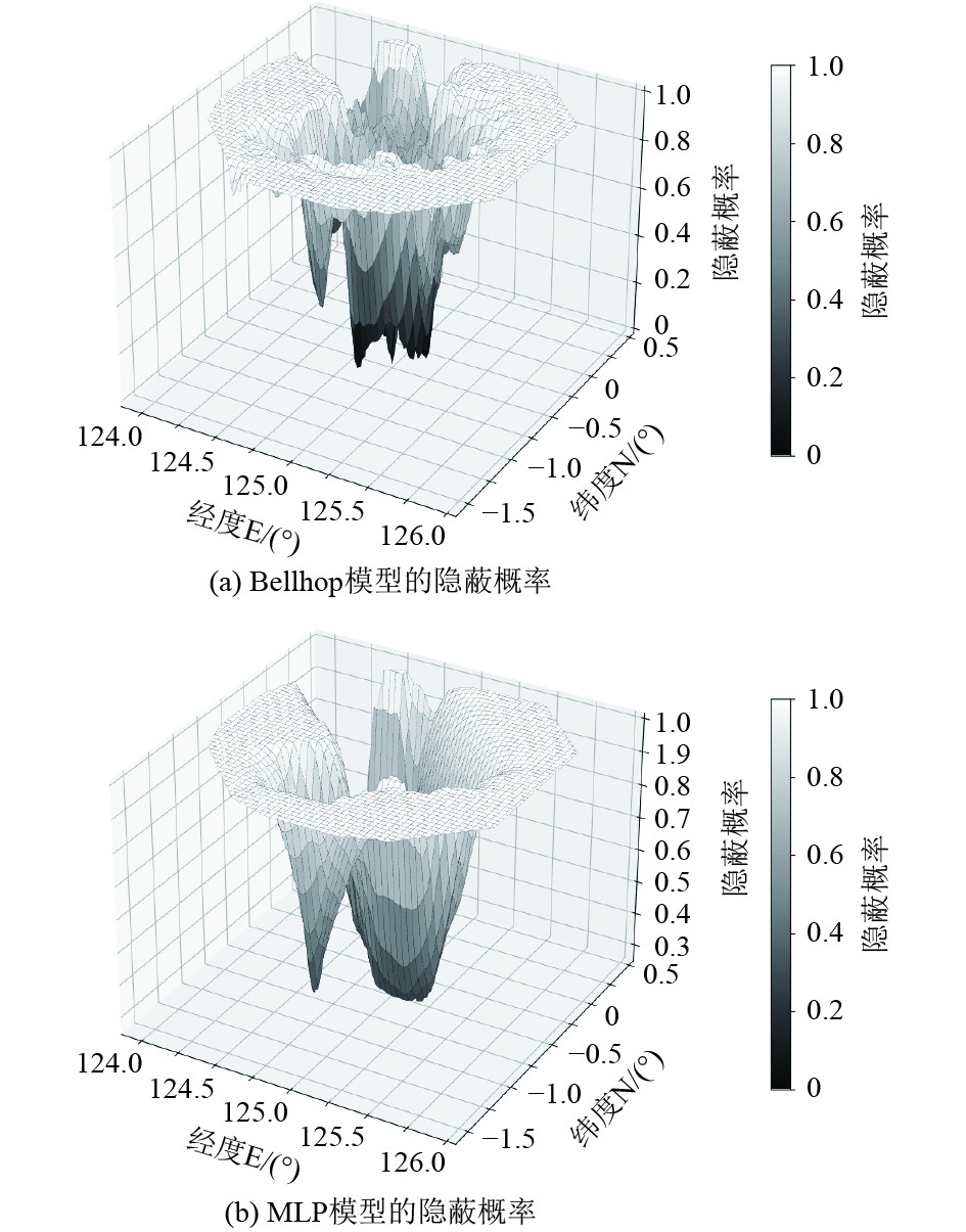 本文针对复杂海洋环境下潜艇隐蔽性评估的难题,提出一种融合声学传播模型与多层感知器(MLP)模型的数据驱动预测框架。通过基于典型声学传播模型生成的大量仿真数据训练MLP模型,实现了对潜艇在多种环境条件下信号余量的快速预测,并构建了数据驱动与物理模型相融合的隐蔽效能评估方法。仿真表明,该模型在不同海洋环境参数下均具有较高的预测准确性与稳定性。进一步将MLP模型预测结果与Bellhop模型输出的隐蔽效能图像进行对比分析,结构相似性指数(SSIM)评估结果显示二者在空间分布特征上具有高度一致性,验证了所提模型在复杂声传播场景下的可靠性与有效性,且能够有效逼近传统物理模型的计算规律。研究结果显示,数据驱动模型在适应性和推广性方面具有一定优势,在一定程度上较传统物理模型更具应用潜力。相关成果为潜艇隐蔽航行路径优化与战术辅助决策提供了理论依据和技术支持,并为后续融合物理机制与机器学习方法的研究提供了参考。