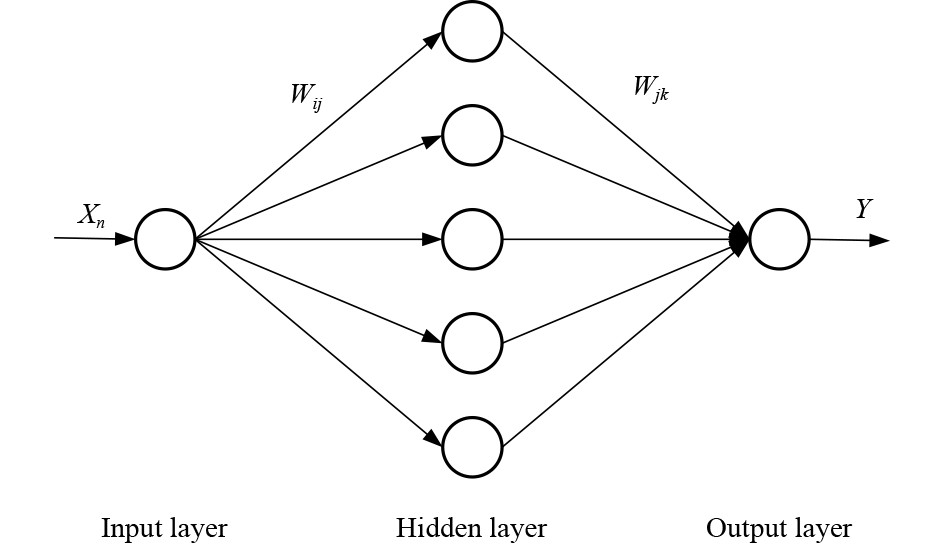 多层感知器(Multilayer Perceptron,MLP)是一类典型的前馈神经网络(Feedforward Neural Network,FNN),由多个神经元构成,通常包括输入层、一个或多个隐藏层以及输出层。每一层包含若干神经元(节点),相邻层之间通过可学习的权重相连,层内神经元之间则不存在连接。网络通过非线性激活函数将输入映射到输出,实现对复杂函数关系的建模。MLP的核心思想是利用梯度下降等优化算法,通过最小化预测值与真实值之间的损失函数,不断调整网络参数(权重和偏置),从而提升模型性能。MLP模型结构如图4所示。