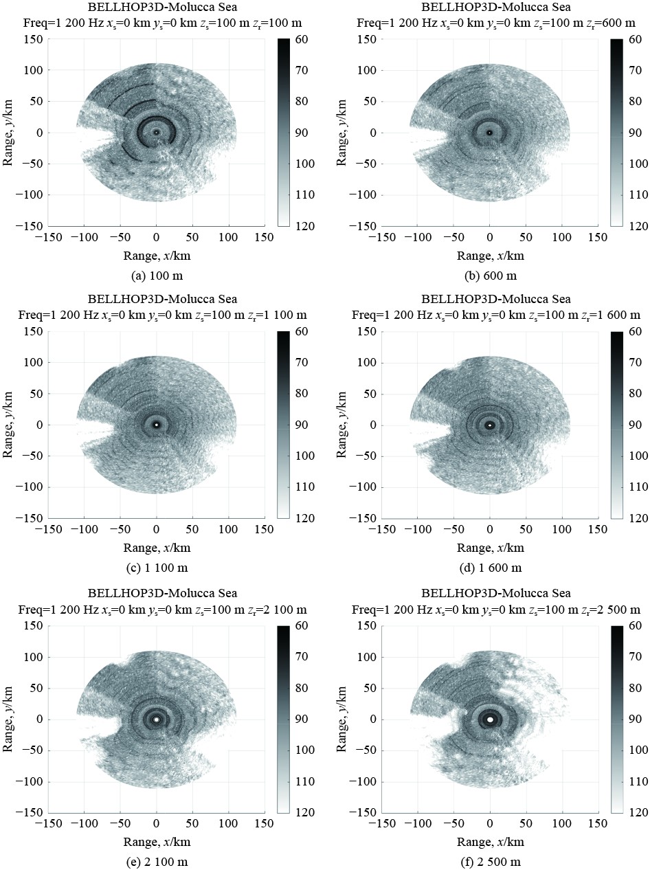 图 8 潜艇在不同深度下传播损失 Fig. 8 Transmission loss of submarines at different depths |
