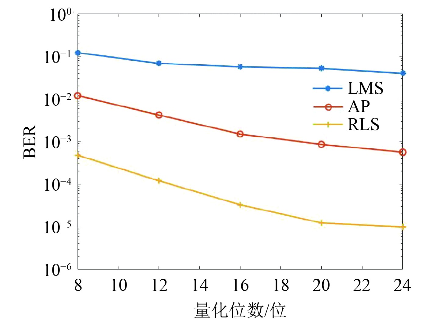 图 6 辅助支路量化位数不同时3种算法的误码率 Fig. 6 BER of three algorithms under varying quantization bits in the auxiliary branch |