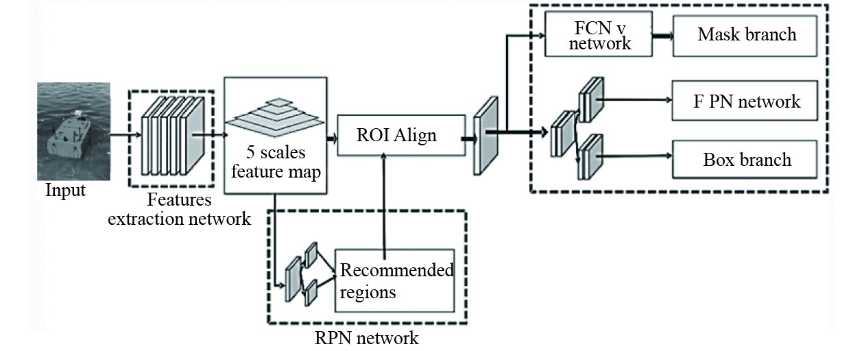 视网膜分割掩膜是一种用于实例分割的任务框架,该方法扩展了Retina Net架构,在单阶段检测器的基础上实现了高质量的实例分割功能。并且通过在多个层次上提取特征图,并将其传递到相应的解码路径中,使模型能够在不同的空间分辨率下保持对物体细节的关注。视网膜分割掩膜的核心原理在于Mask R-CNN基本框架,从而能够有效地捕捉不同尺度的目标对象船舶,如图1所示。