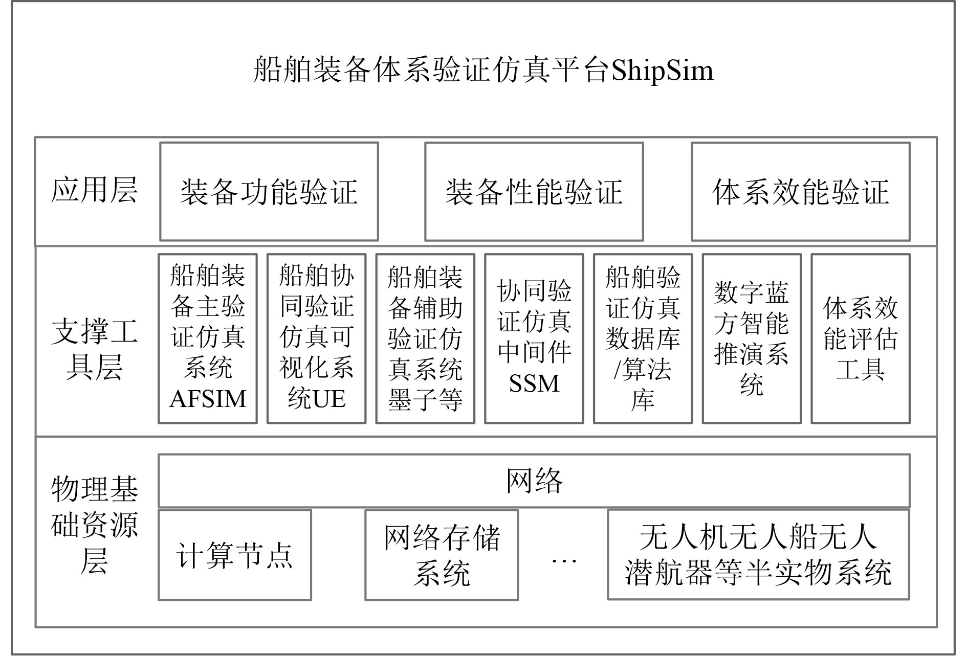 图 1 船舶装备体系验证仿真平台ShipSim系统架构 Fig. 1 ShipSim system architecture for ship equipment system of systems verification simulation platform |