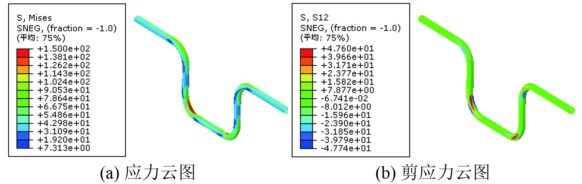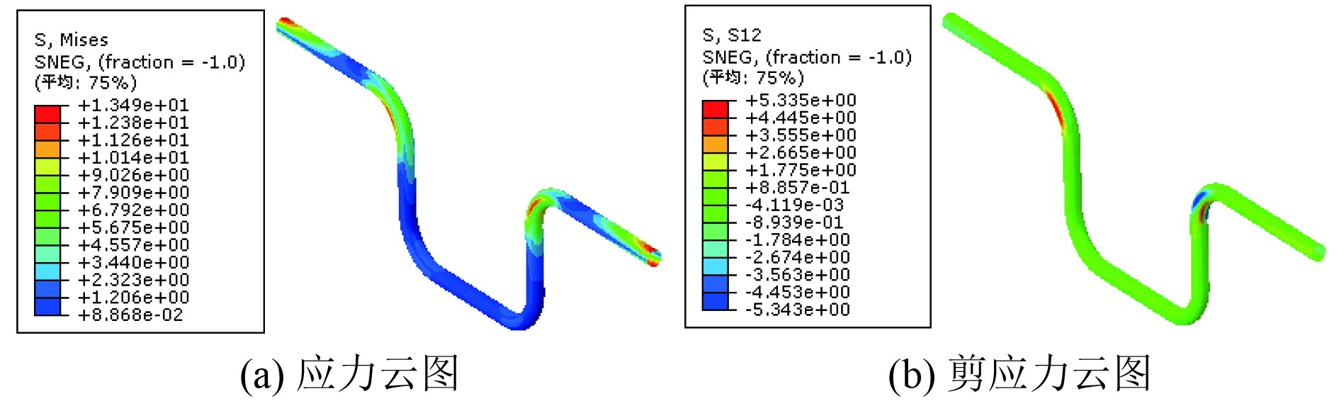 图 5 工作状态下蒸汽管路应力分布云图 Fig. 5 Contours of stress in stream pipeline under working condition |