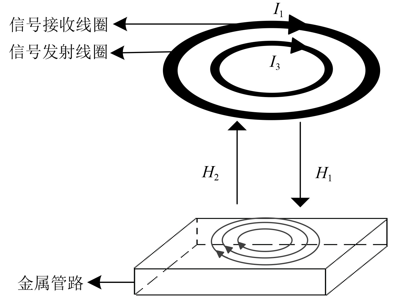 图 1 高频涡流反射模型示意图 Fig. 1 Schematic diagram of high-frequency eddy current reflection model |