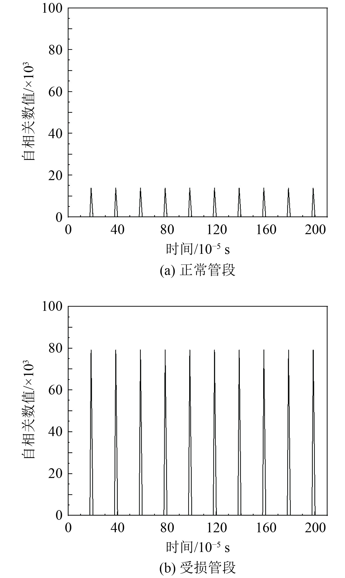 以接收波形的稳定时刻为初始点,并将在正常无损管段的自相关正峰值