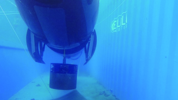 吸力锚是一种相对成熟且可重复利用的锚固方式,可在各类水深使用,目前已用于海上钻井平台、海上风电、水产养殖构造物、海上太阳能电厂、水下设备及船舶等平台,技术相对成熟。吸力锚在安装时利用自重,将锚体贯入海床表面,随后通过水泵将锚体中的海水抽出,使锚体内部压力小于外部,利用压力差使锚体继续贯入海床,直至到达锚体的设计贯入深度。CELLULA Robotics公司开发了具有模块化和灵活架构的Solus系列AUV[20]。该系列AUV从1.6T的Solus-Lite型至10T的Solus-XR型均可搭载吸力锚载荷。其中使用氢氧燃料电池的Solus-LR型(见图4)能够在使用吸力锚将自身锚固在任务区域后,以低功率、安静的状态下在水下执行数月的监视任务[21]。