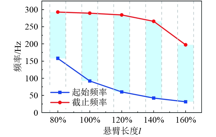 图 5 悬臂长度对带隙特性的影响 Fig. 5 Effect of cantilever length on bandgap characteristics |