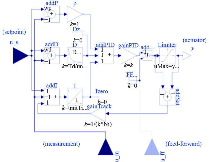 | $ {u}\left({t}\right)={k}_{p}\left[\varepsilon \left(t\right)+\frac{1}{{T}_{i}}\int_{0}^{t}\varepsilon \left(\tau \right){\mathrm{d}}\tau +{T}_{d}\frac{{\mathrm{d}}\varepsilon (t)}{{\mathrm{d}}t}\right],$ | (19) |