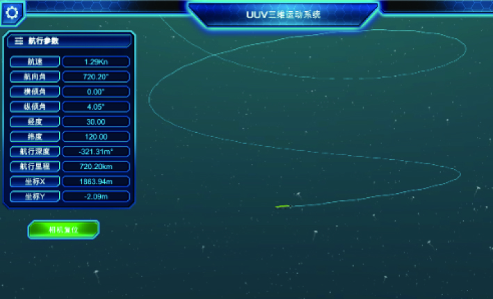 1)上位机软件。发送控制指令(航向、深度、速度),监控系统状态、设置参数、启停仿真;