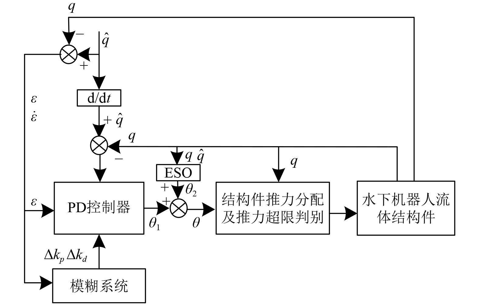 由此,本文设计一种结合精确水动力建模与ESO补偿的模糊自适应PD控制的水下机器人结构件三维控制模型,以实现对水下机器人在复杂流体环境中的高精度、高鲁棒性控制。