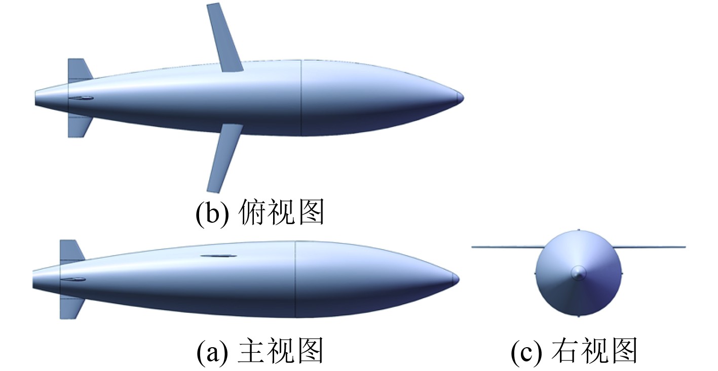 图 1 水下滑翔机几何模型三视图 Fig. 1 Three - view drawing of the underwater glider geometric model |