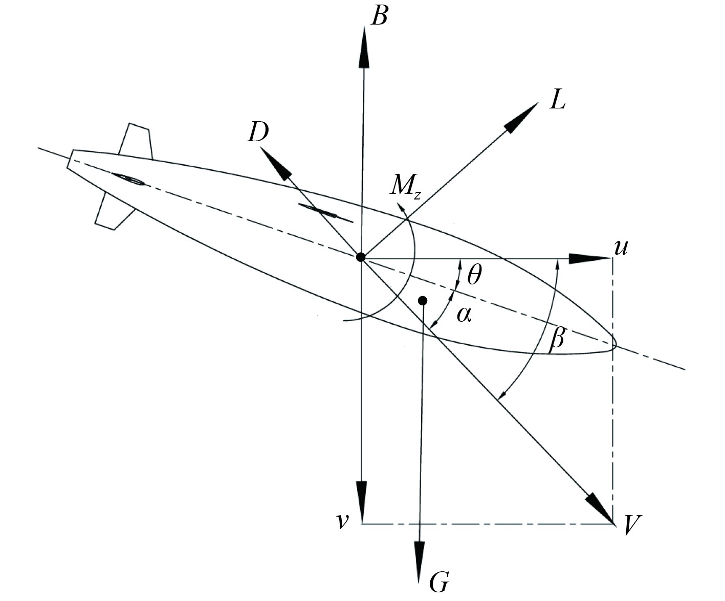 式中:L和D分别为滑翔机所受到的升力和阻力;Mz为俯仰力矩;B为浮力;G为重力;xG和xB分别为重心和浮心的x坐标。