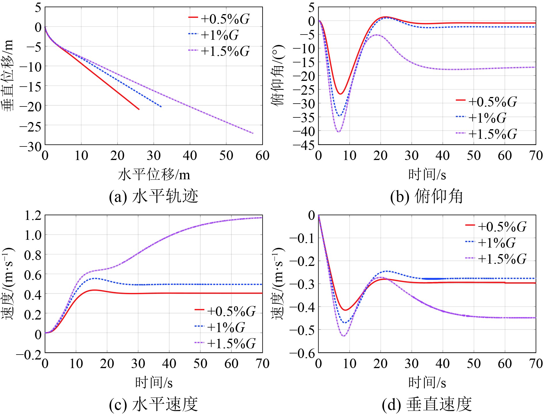 3 滑翔运动特性分析 3.1 不同重浮力差和重浮心距离对滑翔性能的影响为探究重浮力差(
