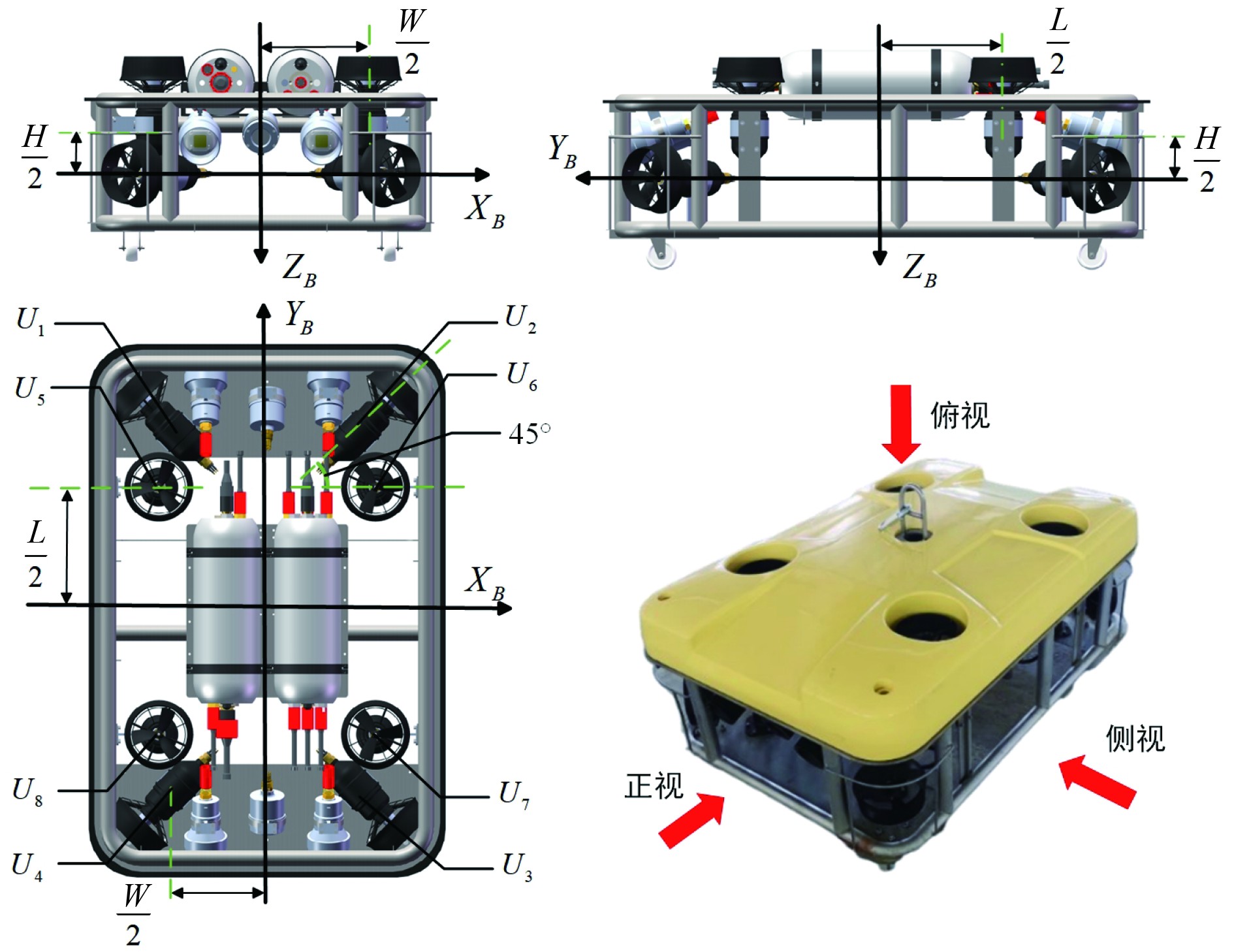 图 3 WHROV推进器布置 Fig. 3 WHROV thruster arrangement |