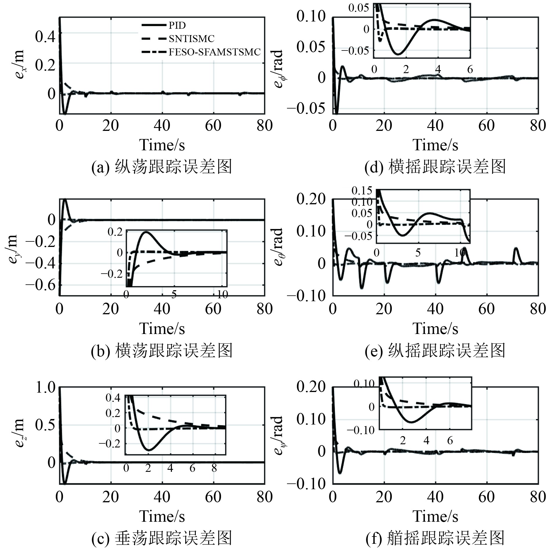 图 5 3种控制方法的跟踪误差对比图 Fig. 5 Tracking error comparison of the three control methods |