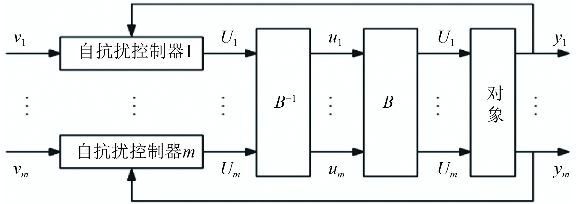 根据上述方法可以设计得到基于自抗扰控制器的一般解耦系统,其结构如图5所示。