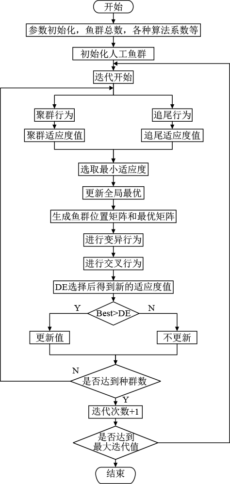 图 6 DE-IAFSA算法实现流程图 Fig. 6 The flow chart of DE-IAFSA algorithm implementation |