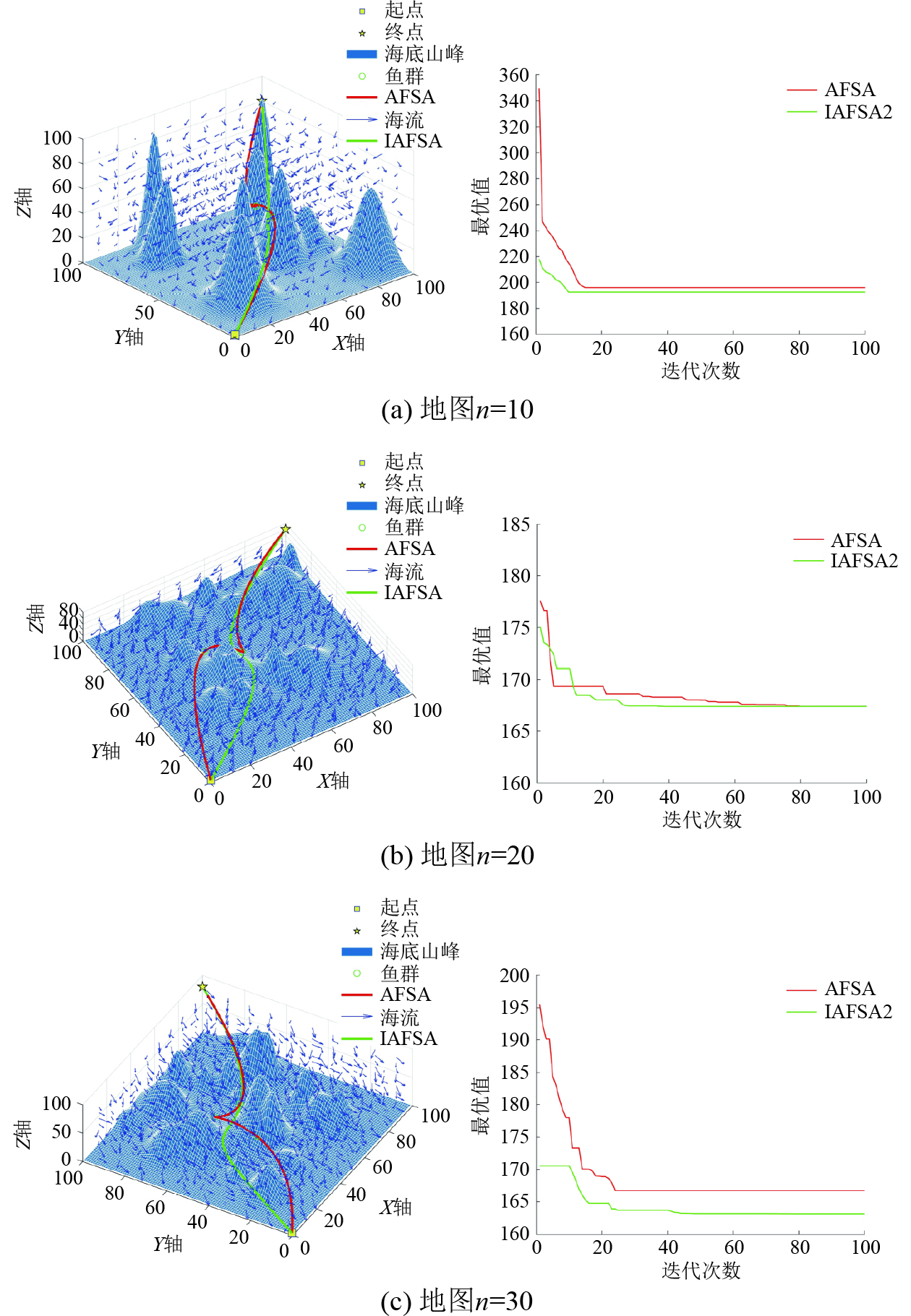 图 7 IAFSA和AFSA对比仿真图 Fig. 7 IAFSA and AFSA comparison simulation diagram |