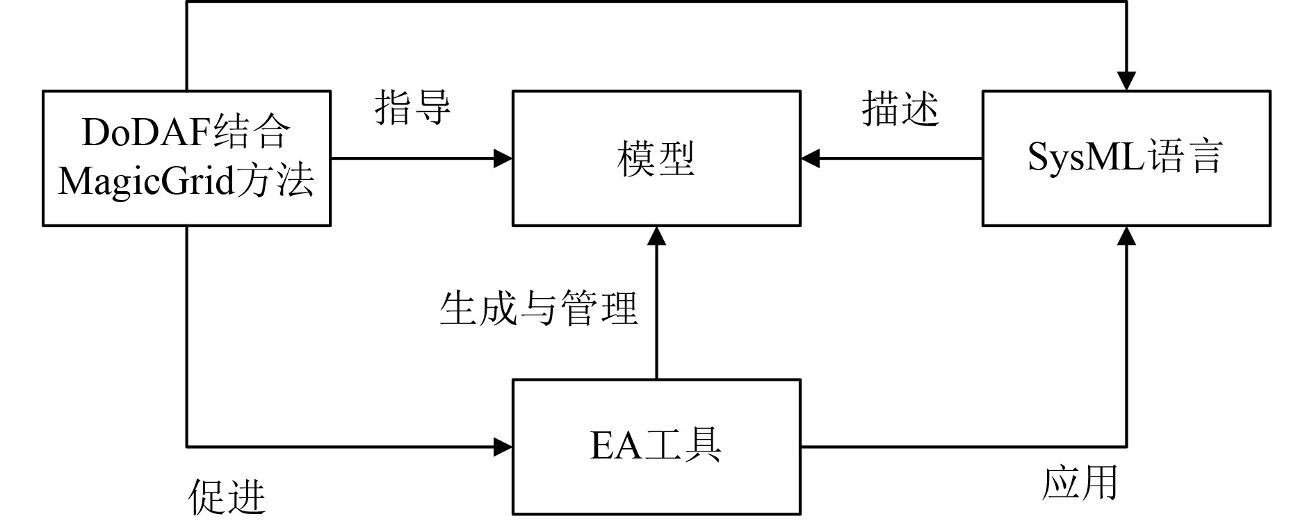 本文体系架构建模方案中,如图1所示,方法论采用DoDAF结合MagicGrid的方法,建模语言选择SysML,建模工具选择Enterprise Architect(EA)。