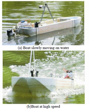 3 Results of initial testsThe constructed air-cavity boat was tested outdoors in Hordemann Pond in Moscow, Idaho in summer 2014. Environmental conditions in most cases were calm; small waves and wind were determined to have insignificant effects. At least two experimental runs in opposite directions were made at each selected throttle setting in order to compensate for directional bias.