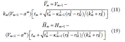 The kinematic hardening rule is described in detailby Li and Meissner(2002). The position of the memory center is defined by the hardeningrule firstly, which states that the memory center is located at the origin ofthe V-H space for virgin loading, and that it moves to the new load point forthe next loading where the loading path changes. The movement of the bounding and loading surfaces is controlled by the hardening rule else, which statesthat when the memory center gets its new position, the old bounding and loadingsurfaces in the last loading event are removed, and the new bounding and loading surfaces begin to play their roles in the new loading event. Thekinematic hardening rule is schematically represented in Fig. 2.