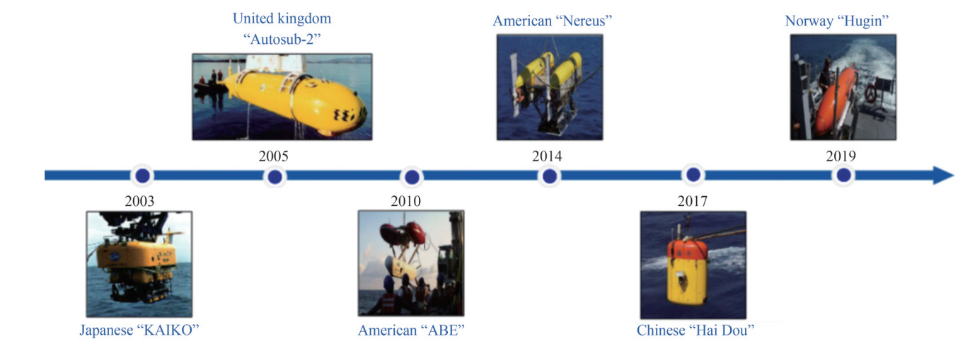 Over the years, there have been recorded incidents of underwater vehicle loss during operation, as shown in Figure 2. For example, the Japanese AUV "KAIKO" suffered a malfunction and descended to the depths of the Pacific Ocean during a marine research mission in May 2003. To date, it remains unrecovered (Momma et al., 2004). In February 2005, the "Autosub-2" AUV was lost during its third Antarctic mission when the accompanying research vessel could not retrieve it due to substantial ice coverage. The AUV was trapped under the Antarctic ice until its batteries were exhausted. Investigators from the National Oceanography Centre in Southampton have posited that a hardware malfunction could have interrupted the power supply, leading the AUV's artificial intelligence navigation system to attempt surfacing prematurely. Consequently, the AUV became irretrievably lodged beneath the ice layer (Strutt, 2006). Another lost vehicle, the American AUV "Autonomous Benthic Explorer" (ABE), a pioneering vehicle within the US scientific community, represented a significant milestone in underwater robotics (German et al., 2008). Unfortunately, ABE was lost in March 2010 during its 222nd research dive off the Chilean coast. Subsequent analysis suggests that the likely cause of the loss was the implosion of a glass float rated for pressures up to 3000 m. This initial failure was believed to have set off a cascading failure, leading to the implosion of the remaining glass floats. Such a catastrophic event would have resulted in the instant loss of all onboard systems, including communication with the surface vessel and the vehicle's recovery mechanisms. The hybrid ROV "Nereus" was reported lost during a scientific expedition within the Kermadec Trench, located northeast of New Zealand, in 2014. This vehicle was operational at a significant depth of approximately 9 900 m when communication ceased. Subsequent analyses by researchers suggested that akin to the earlier incident with the "ABE", the loss of "Nereus" may have been attributed to the failure of its buoyancy materials. These materials presumably imploded due to the immense pressure of the deep-sea environment, a hypothesis consistent with the known challenges posed by such extreme underwater conditions (Bowen et al., 2009; Bowen et al., 2008; Whitcomb et al., 2010). In March 2017, the Chinese AUV "Hai Dou" suffered a malfunction and descended to the ocean floor during an abyssal operation as it was preparing for its return journey. More recently, the "Hugin" AUV encountered a loss during its inaugural under ice mission in the Antarctic in January 2019 (Chen et al., 2021). Fortunately, the AUV was successfully retrieved from the seabed after four days. Before the dive, comprehensive pre-dive inspections were carried out on the vehicle, which showed no irregularities. It was suspected that the AUV became ensnared under an ice floe, which led to the disruption of its iridium positioning signal reception.