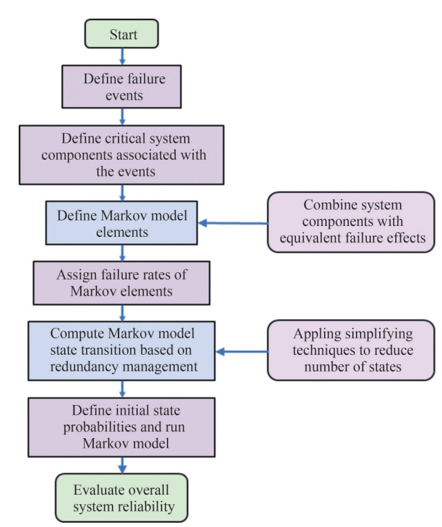 Markov chains are commonly used to perform the reliability assessment of engineering systems. For the reliability evaluation of complex systems, the Markov chain often performs better compared to other models. The Markov chain is particularly effective for systems where components can be well characterized by mathematical techniques. Figure 8 shows the analysis of the design process of the Markov model.