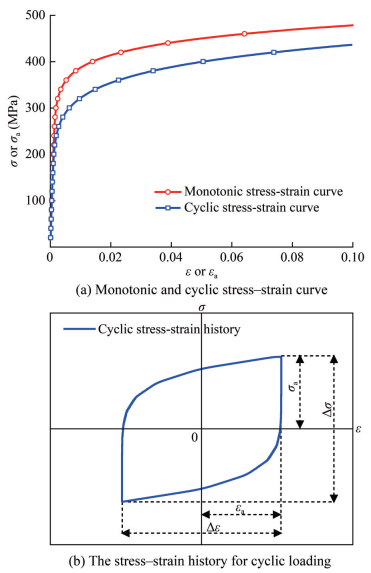 $$\varepsilon_a=\frac{\sigma_a}{E}+\left(\frac{\sigma_a}{K^{\prime}}\right)^{\frac{1}{n^{\prime}}}$$ (2) where εa and σa are the amplitude of true strain and stress, respectively, and E is the Young's modulus.