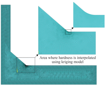Although the measurement points are relatively dense around the weld toe, the point results cannot be directly used for modeling the material properties in the finite element model. The Kriging interpolation method is employed to estimate the hardness at locations near the measurement points. The Kriging interpolation method was originally developed by Krige and then later expanded by Matheron (Matheron, 1973) for geostatistics. Important features of the Kriging method, such as its interpolation capability and flexibility to accurately approximate arbitrary functions, have been identified and applied in structural reliability analyses (Dong et al., 2020; Gaspar et al., 2014).