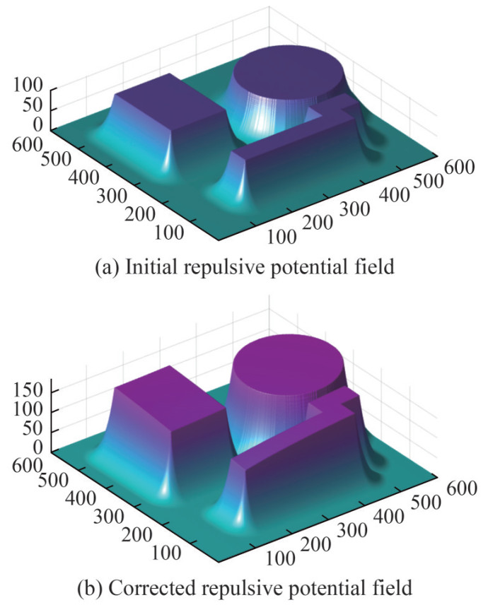 A correction of a repulsive potential field function is amended as Urg, expressed as Equation 8. A parameter β included in the corrected repulsive potential field aims to fix the direction of the combined force biased towards the destination. The value of β is between 0 and 1.