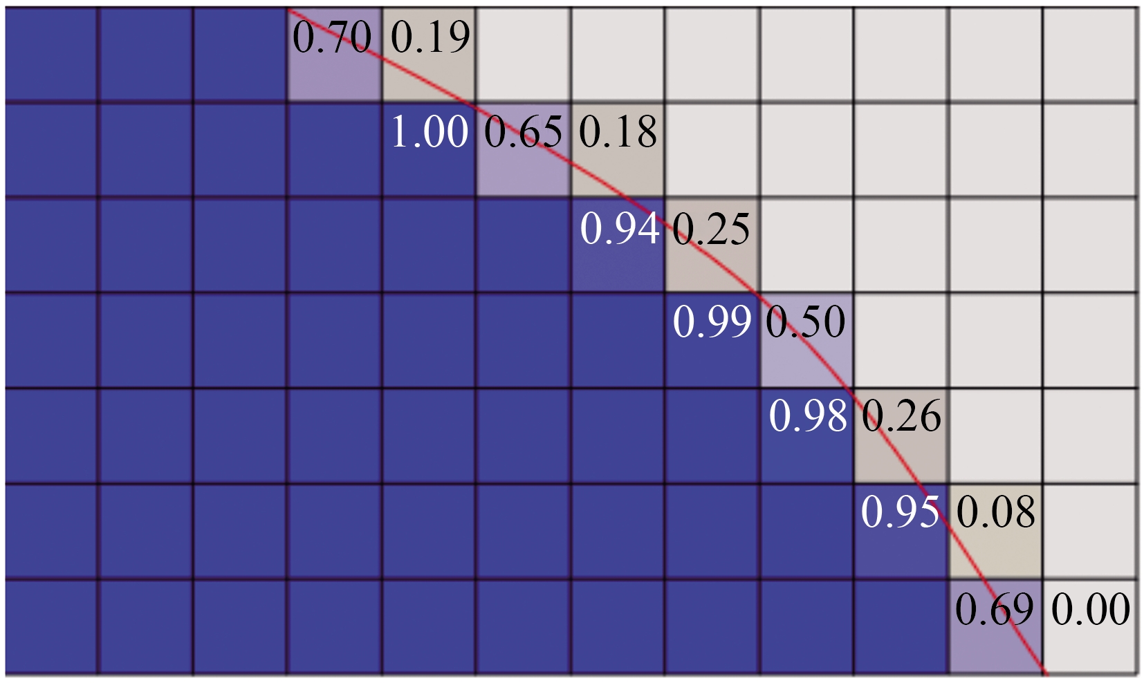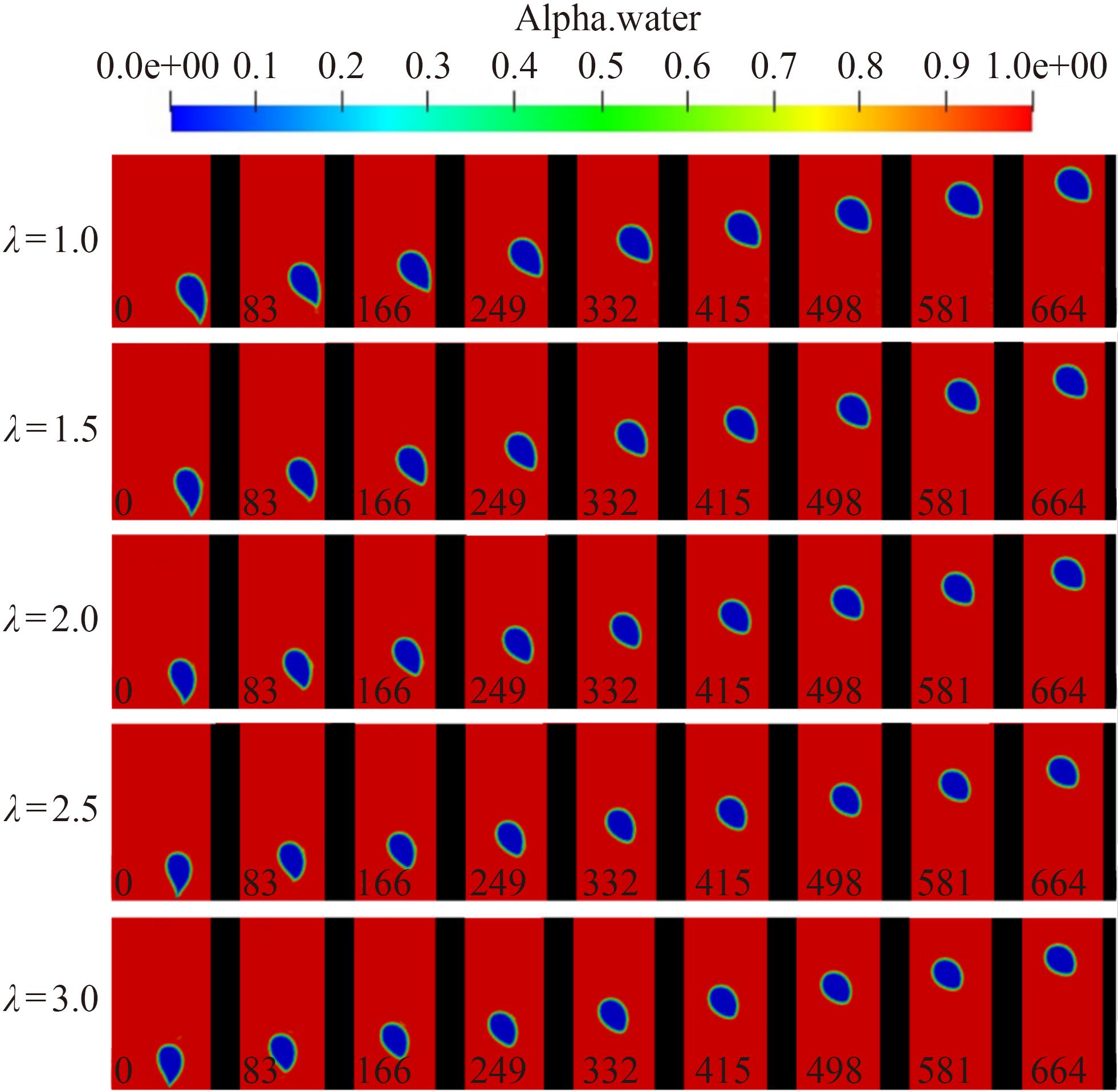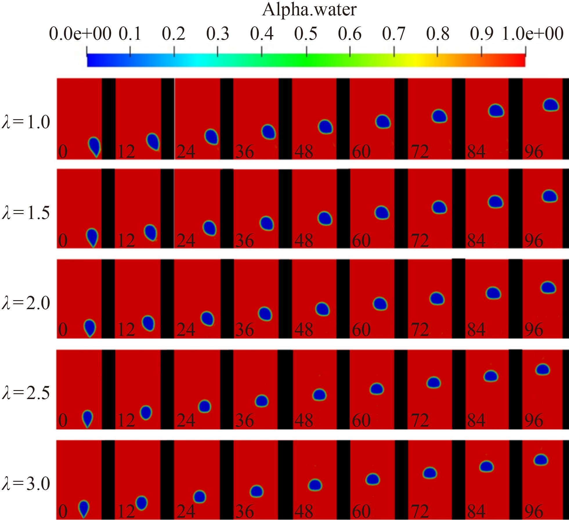 , the grid unit is liquid phase; when , the grid unit is gas phase. The gas–liquid interface can be positioned as between 0 and 1. The gas–liquid interface can be solved by the following equations:
