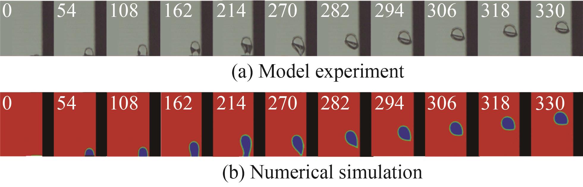 Figure 5 compares the model experiment and numerical simulation of silicone oil with bubble–wall distance parameter