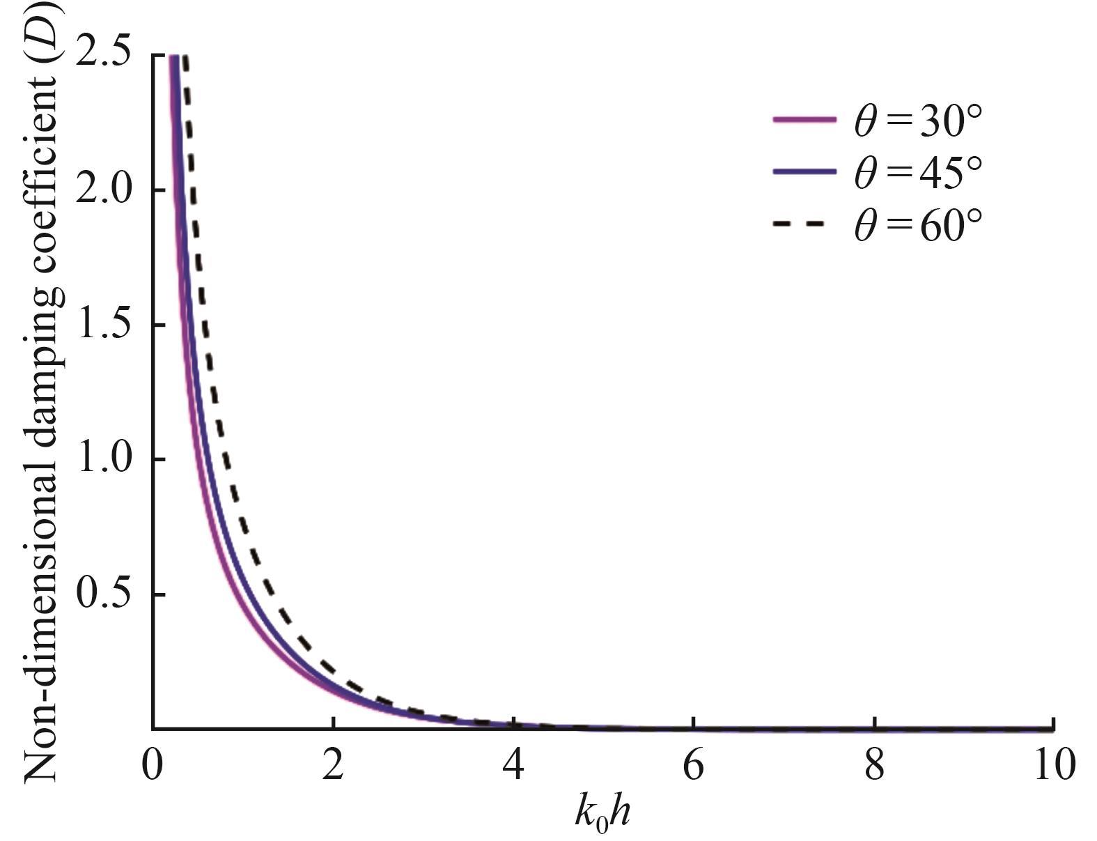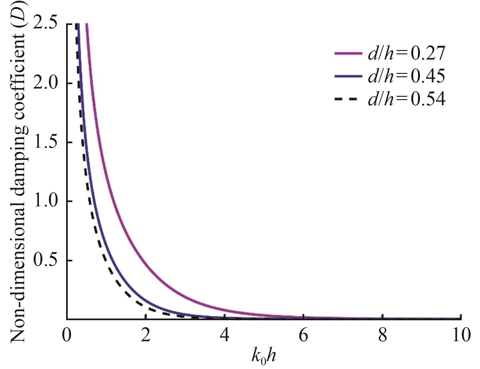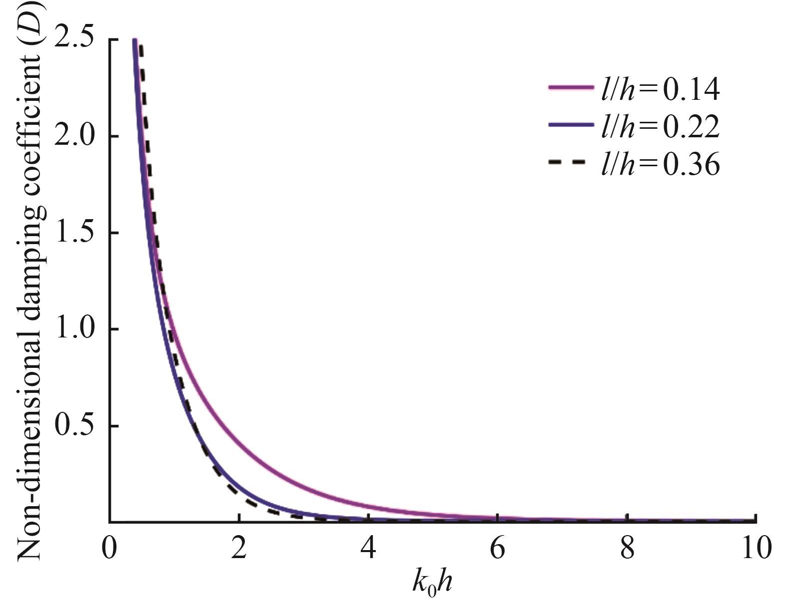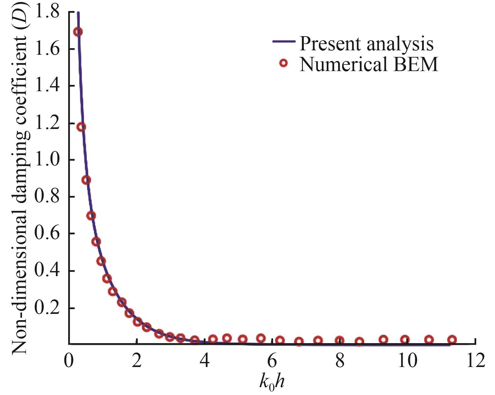 Figure 4 shows a comparison between the damping coefficient (D) obtained from the current analytical model (without a VFPM wall) and the BEM results of Zheng et al. (2006), plotted against k0h. The results demonstrate a good agreement in both their trends and numerical values.